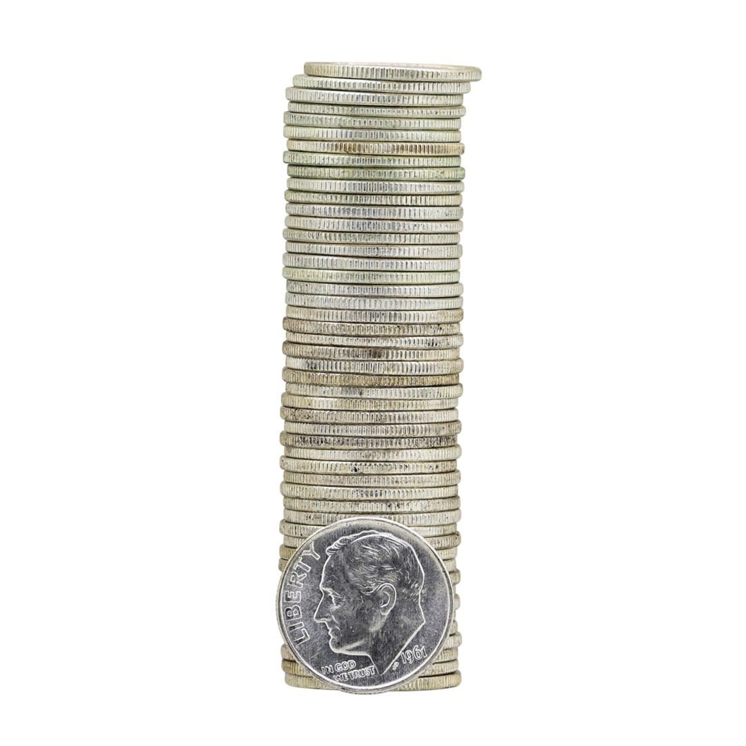 One Roll of (50) 1961 Brilliant Uncirculated Roosevelt Dimes.