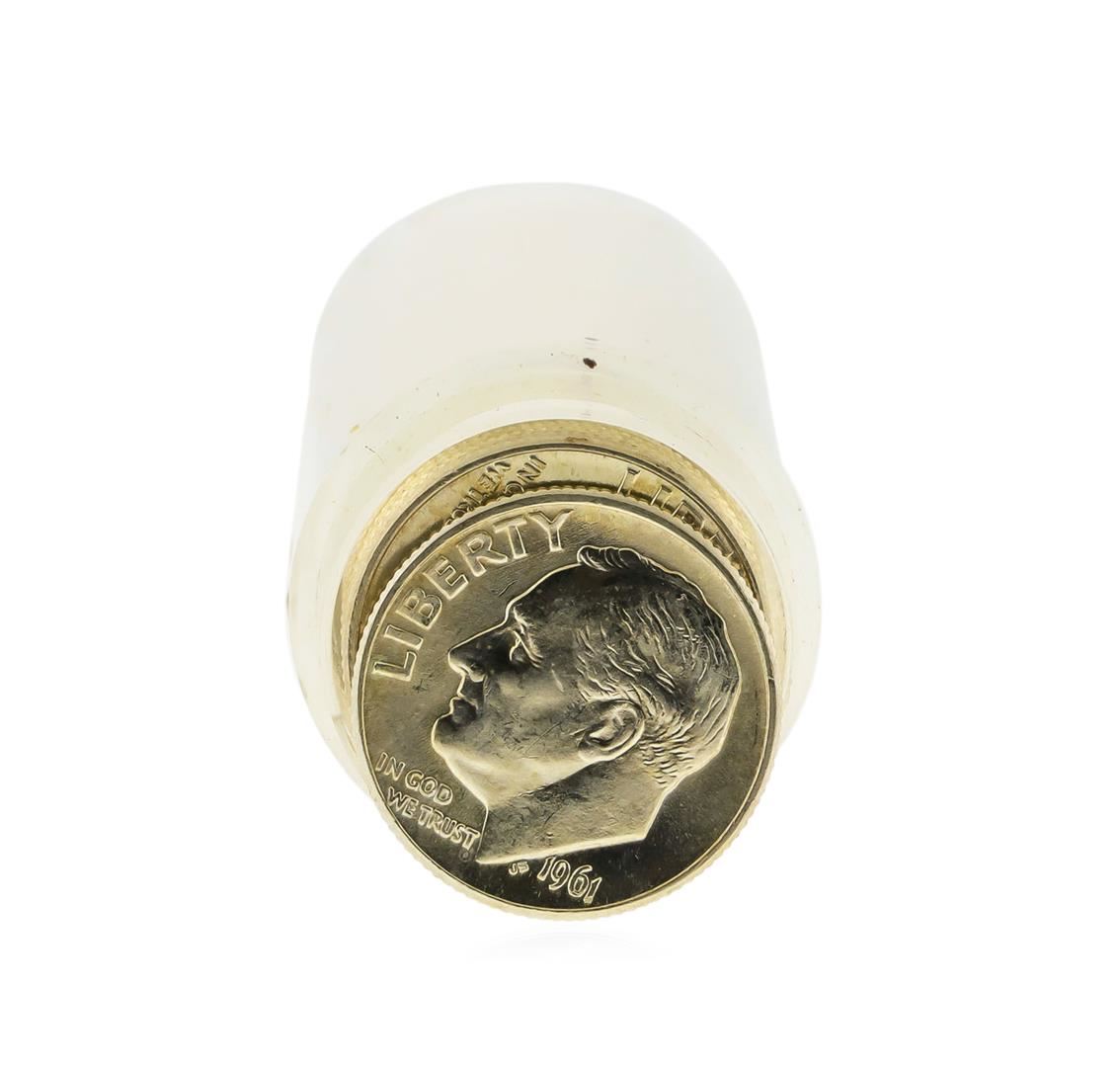 One Roll of (50) 1961-D Brilliant Uncirculated Roosevelt Dimes.