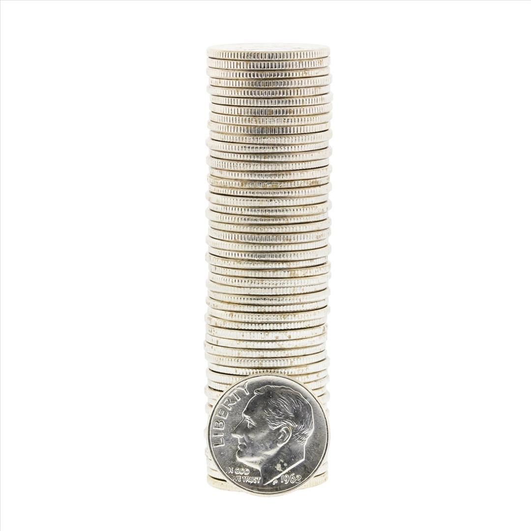 One Roll of (50) 1962-D Brilliant Uncirculated Roosevelt Dimes.