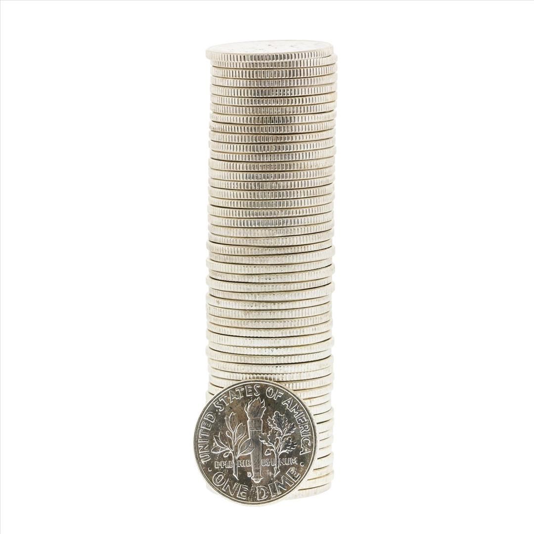 One Roll of (50) 1963-D Brilliant Uncirculated Roosevelt Dimes.