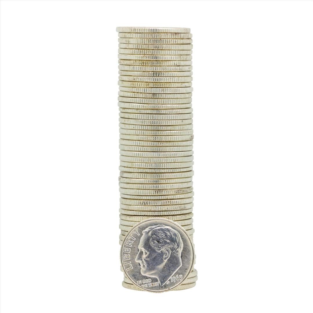 One Roll of (50) 1963-D Brilliant Uncirculated Roosevelt Dimes.