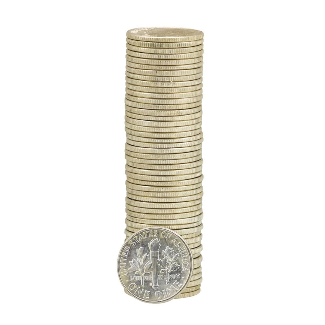 One Roll of (50) 1963-D Brilliant Uncirculated Roosevelt Dimes.