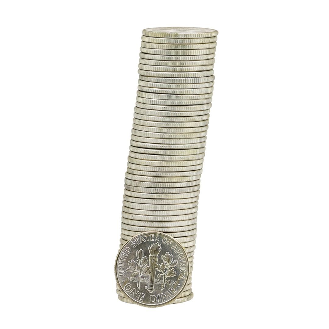 One Roll of (50) 1963-D Brilliant Uncirculated Roosevelt Dimes.