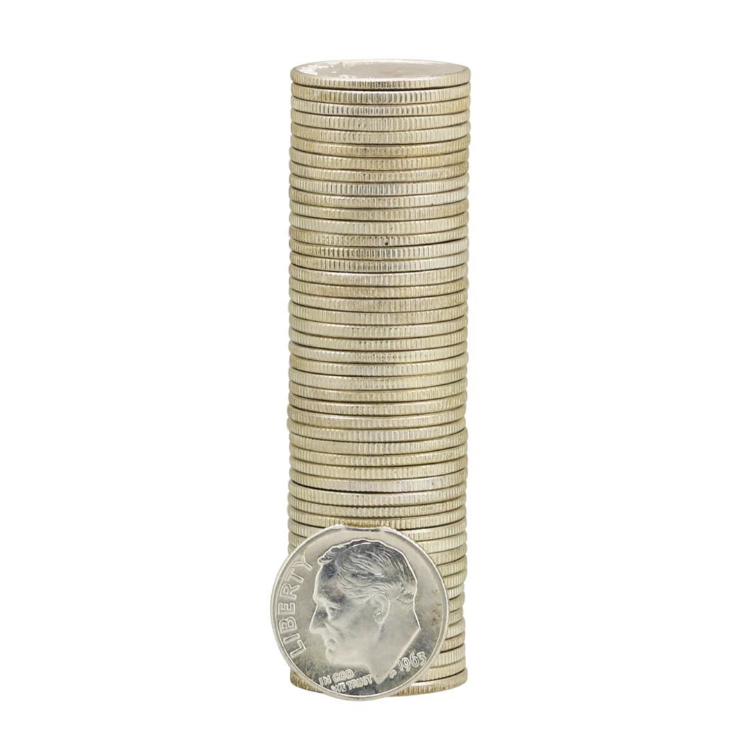 One Roll of (50) 1963-D Brilliant Uncirculated Roosevelt Dimes.
