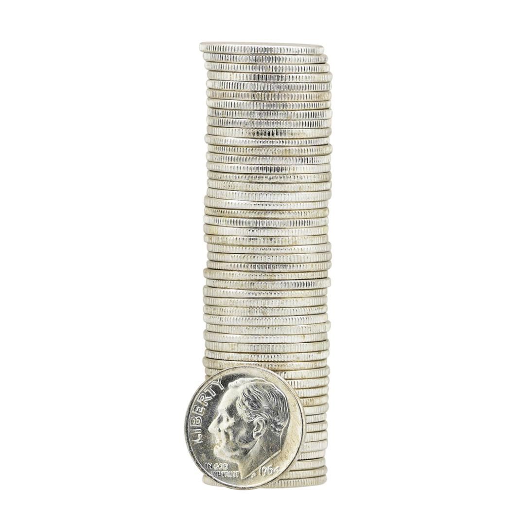 One Roll of (50) 1964 Brilliant Uncirculated Roosevelt Dimes.