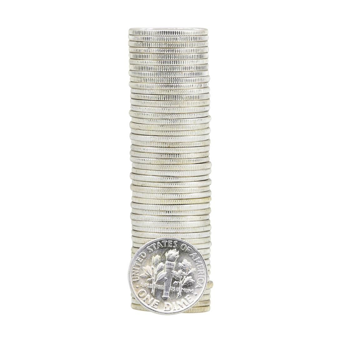 One Roll of (50) 1964 Brilliant Uncirculated Roosevelt Dimes.