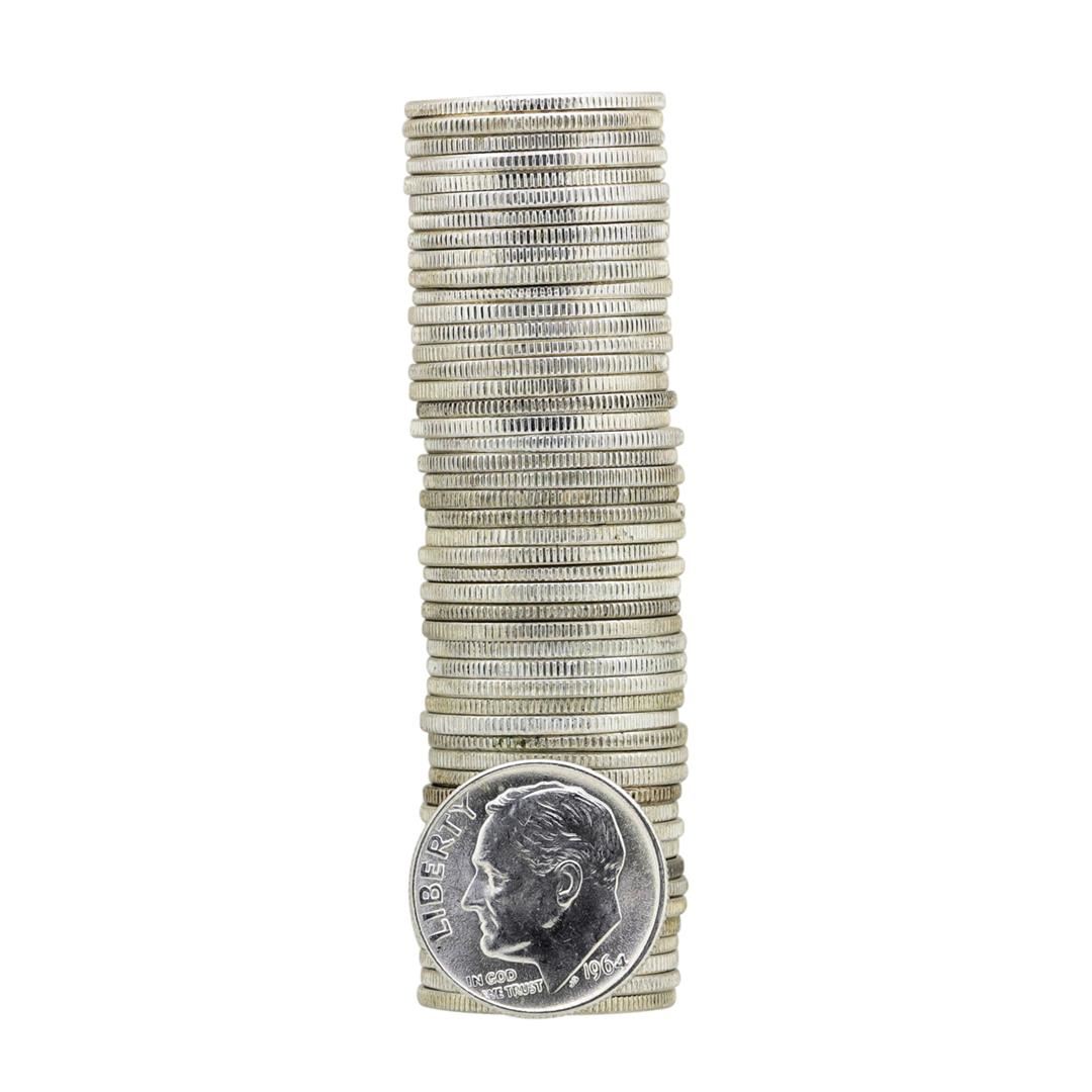 One Roll of (50) 1964 Brilliant Uncirculated Roosevelt Dimes.