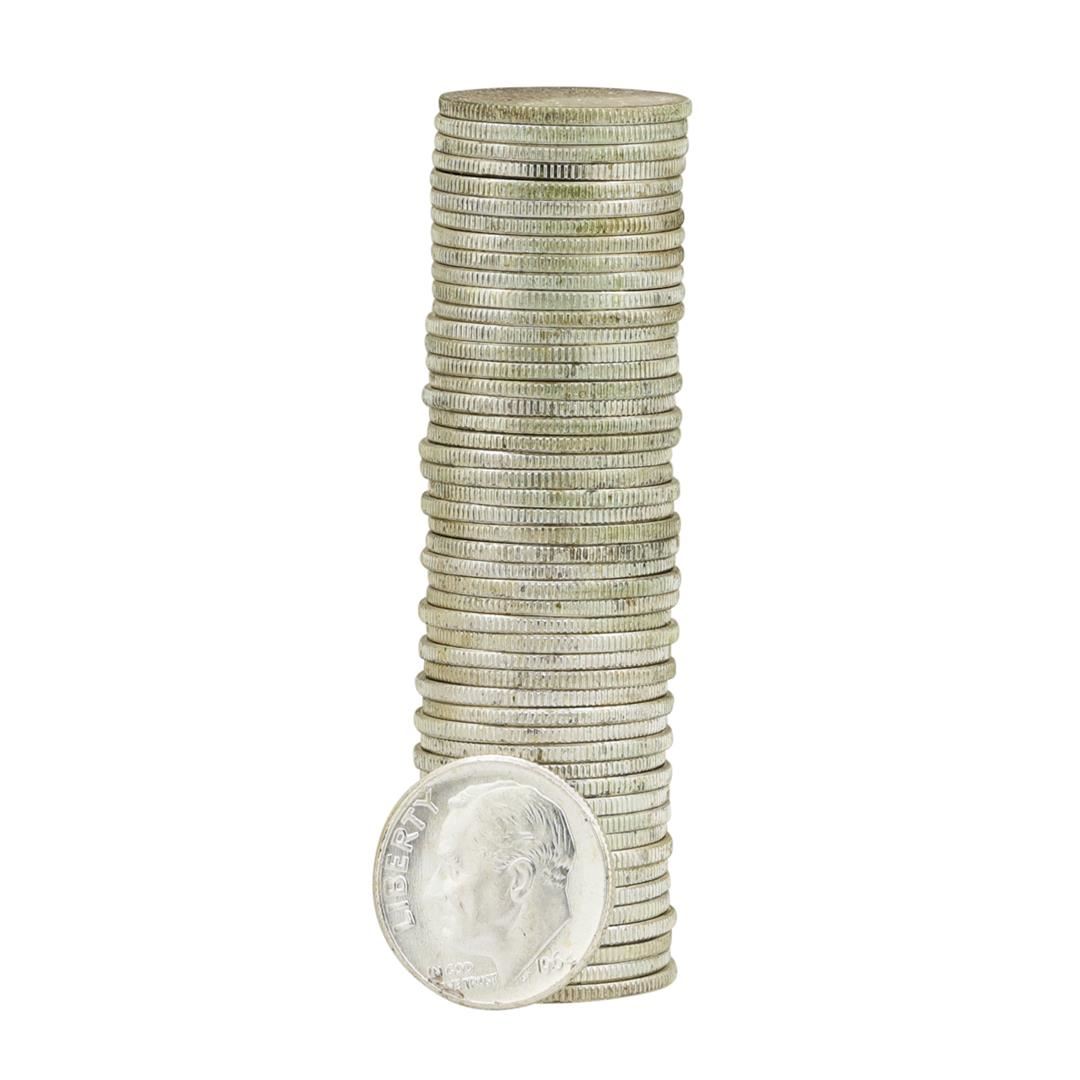 One Roll of (50) 1964 Brilliant Uncirculated Roosevelt Dimes.
