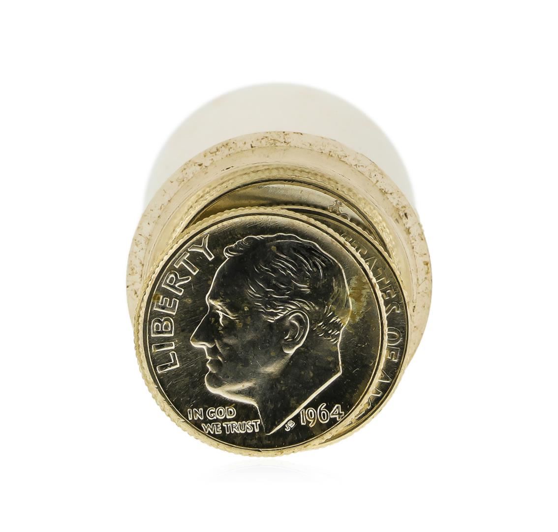 One Roll of (50) 1964-D Brilliant Uncirculated Roosevelt Dimes.