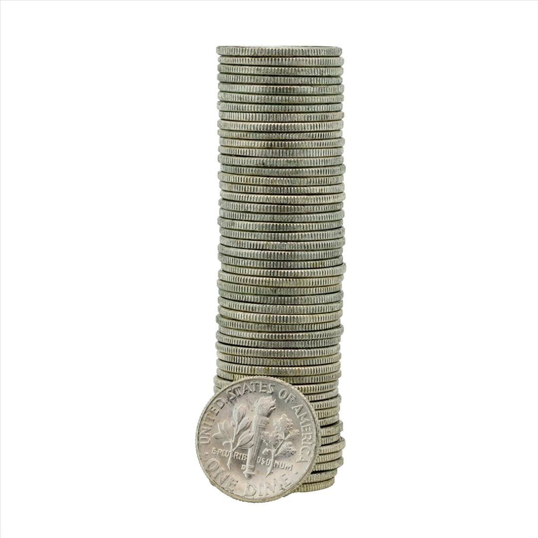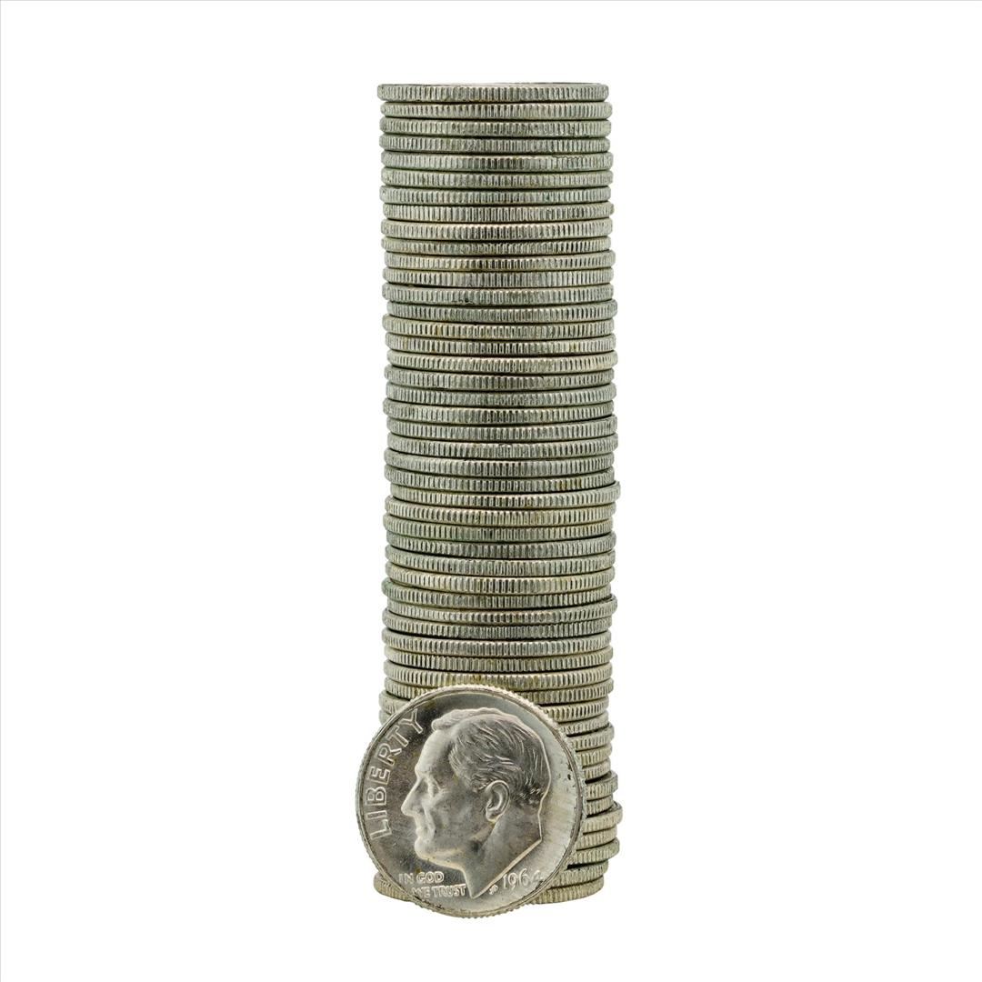 One Roll of (50) 1964-D Brilliant Uncirculated Roosevelt Dimes.