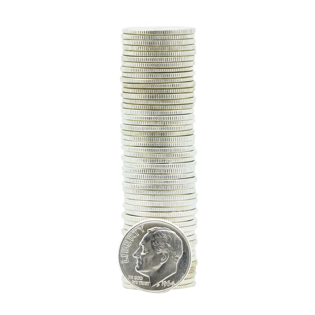 One Roll of (50) 1964-D Brilliant Uncirculated Roosevelt Dimes.