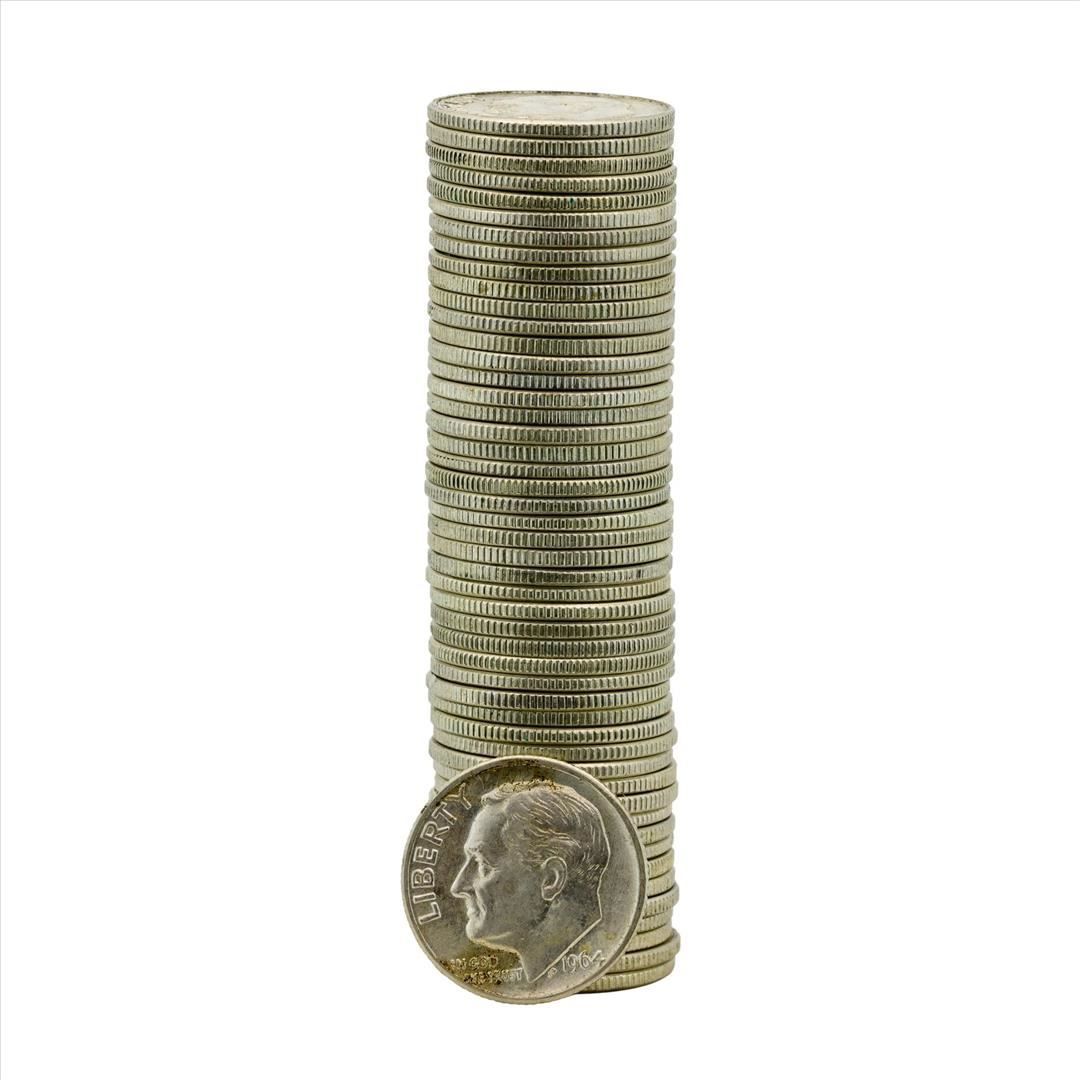 One Roll of (50) 1964-D Brilliant Uncirculated Roosevelt Dimes.