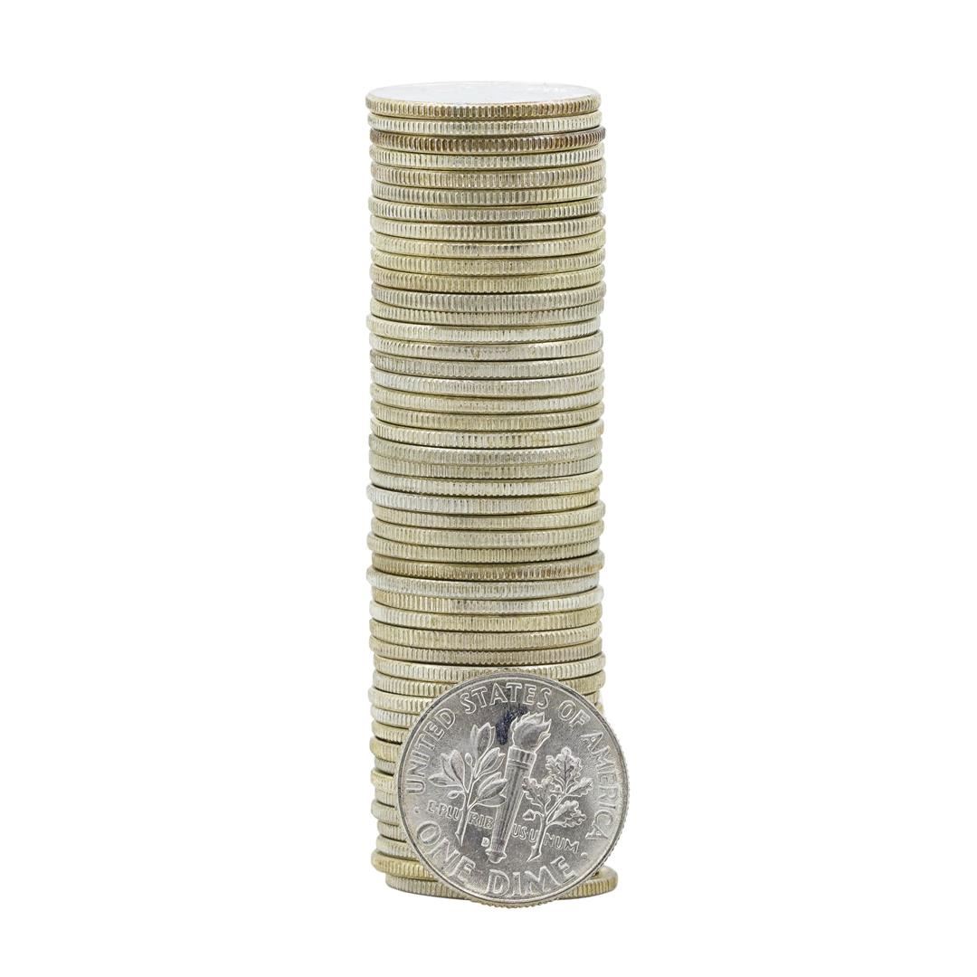 One Roll of (50) 1964-D Brilliant Uncirculated Roosevelt Dimes.