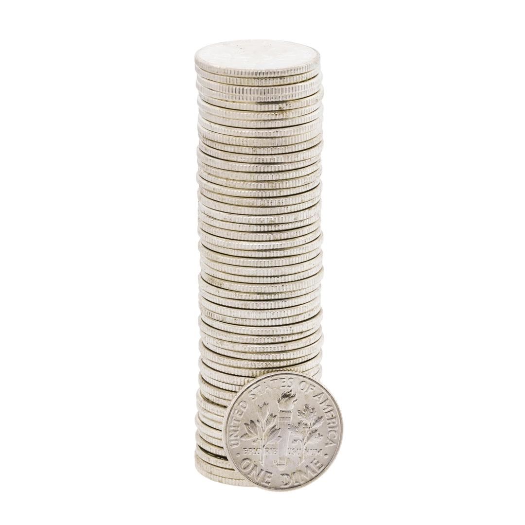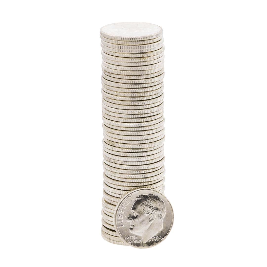One Roll of (50) 1964-D Brilliant Uncirculated Roosevelt Dimes.