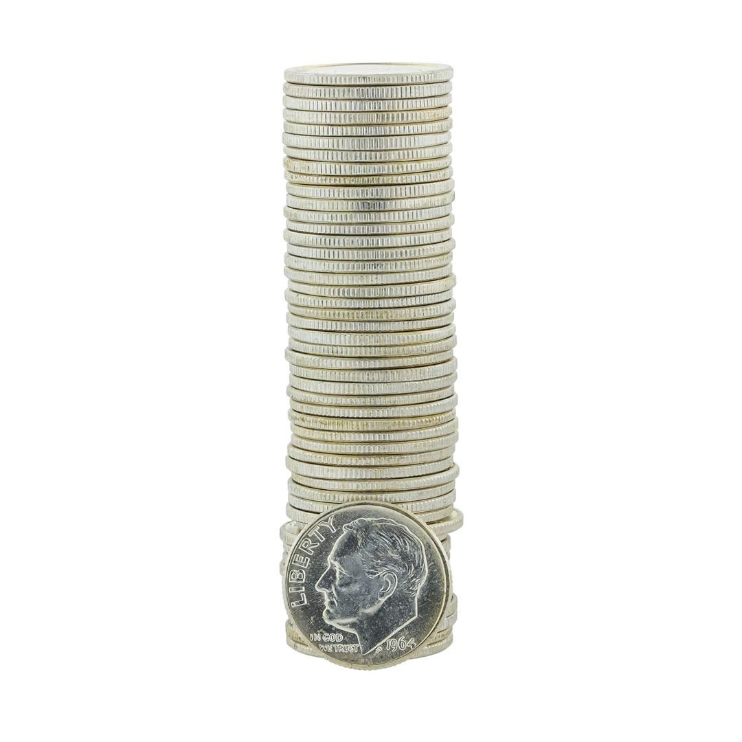 One Roll of (50) 1964-D Brilliant Uncirculated Roosevelt Dimes.