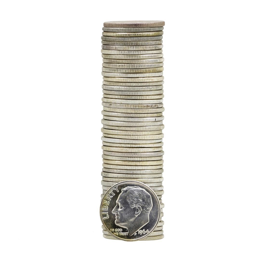 One Roll of (50) 1964-D Brilliant Uncirculated Roosevelt Dimes.