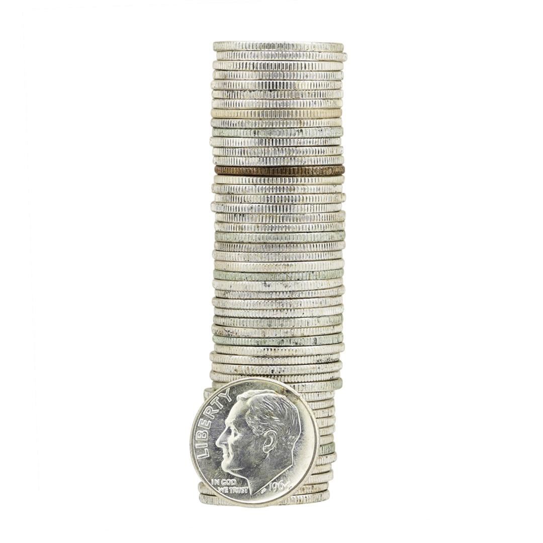 One Roll of (50) 1964-D Brilliant Uncirculated Roosevelt Dimes.