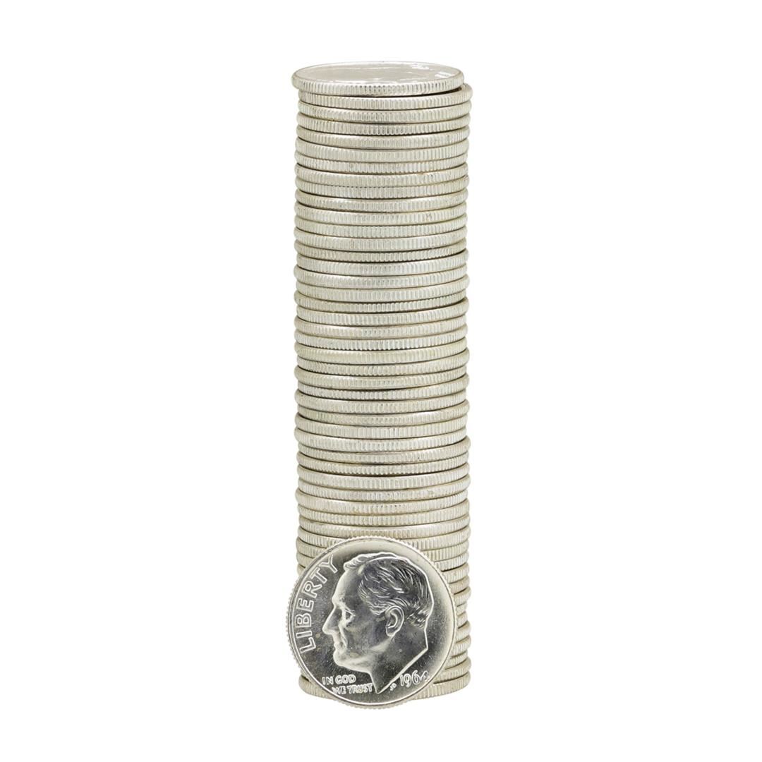 One Roll of (50) 1964-D Brilliant Uncirculated Roosevelt Dimes.