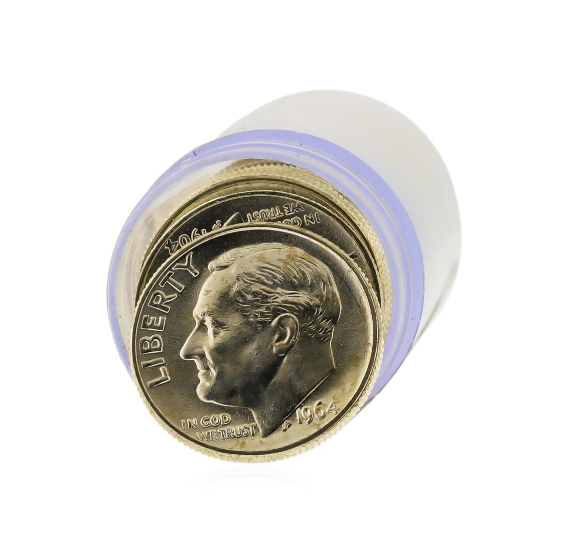 One Roll of (50) 1964-P Brilliant Uncirculated Roosevelt Dimes.