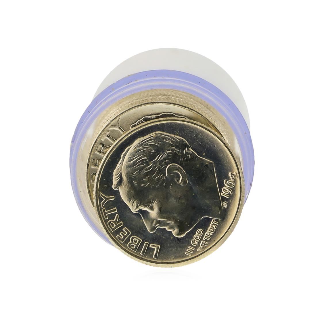 One Roll of (50) 1964-P Brilliant Uncirculated Roosevelt Dimes.