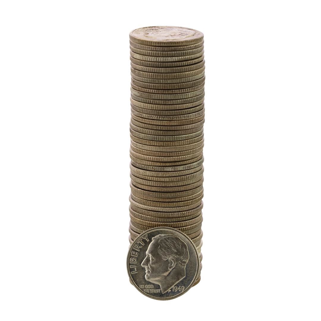 Roll of (50) Brilliant Uncirculated 1949-D Roosevelt Dime Coins