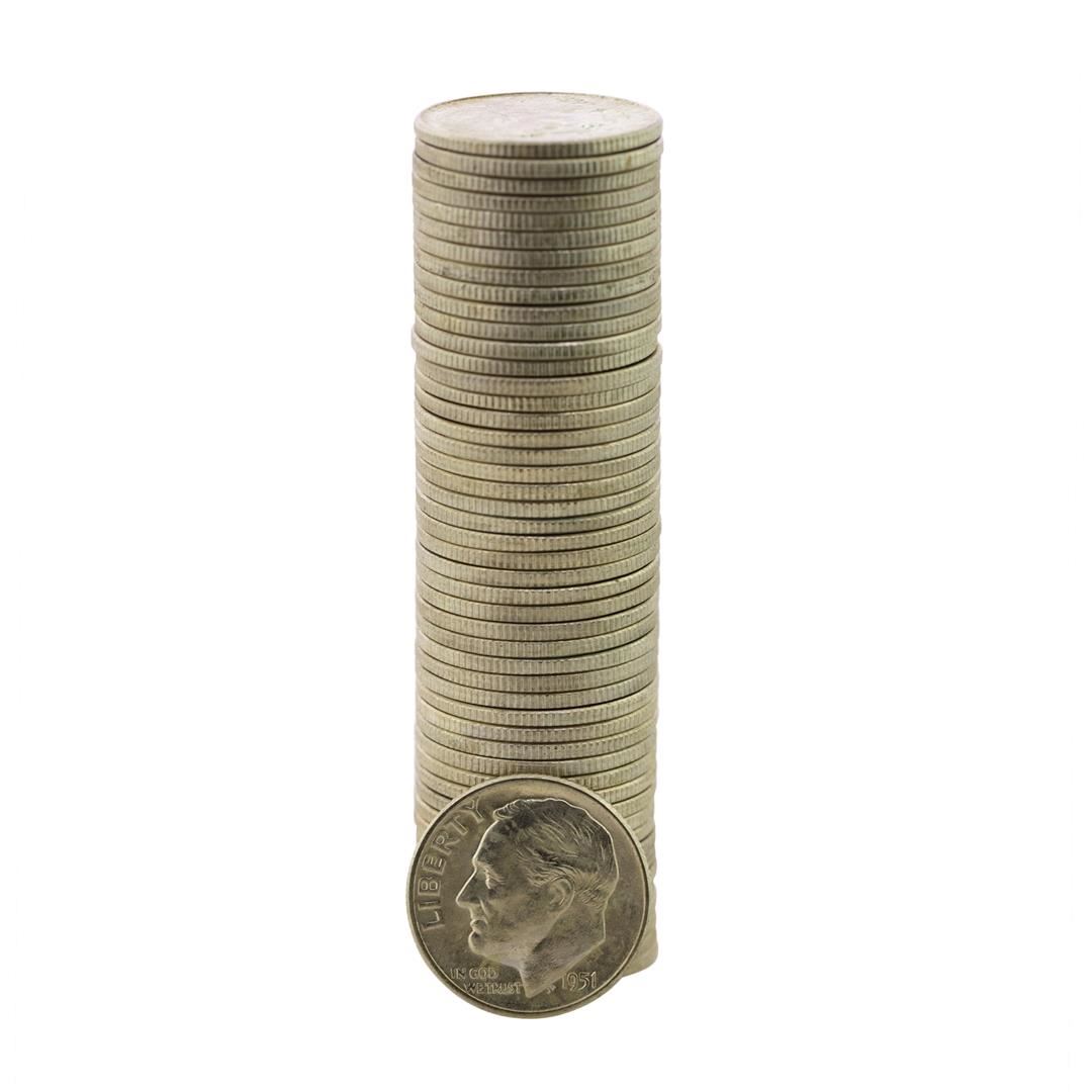 Roll of (50) Brilliant Uncirculated 1951-D Roosevelt Dime Coins