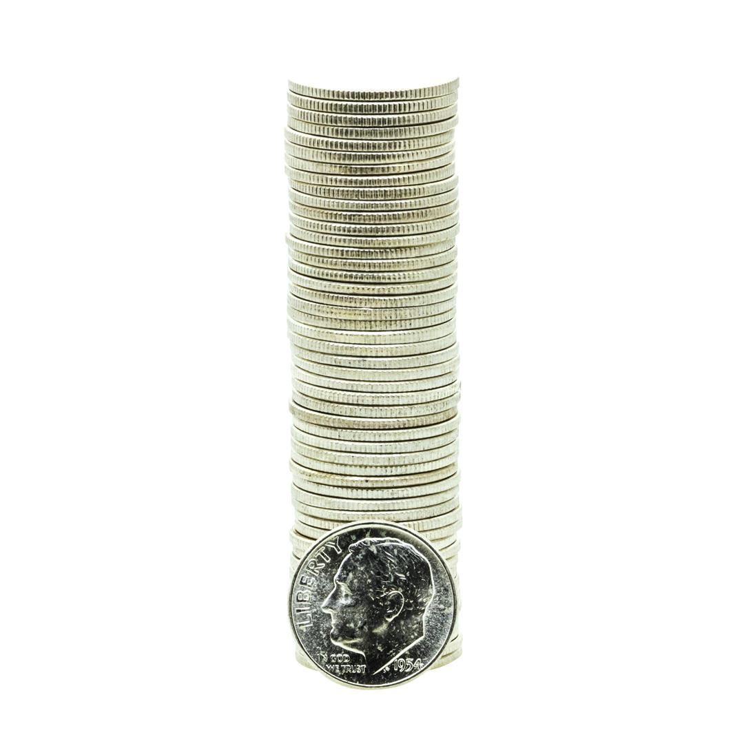 Roll of (50) Brilliant Uncirculated 1954 Roosevelt Dime Coins