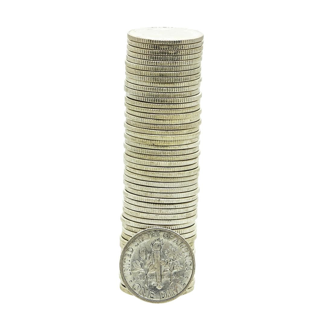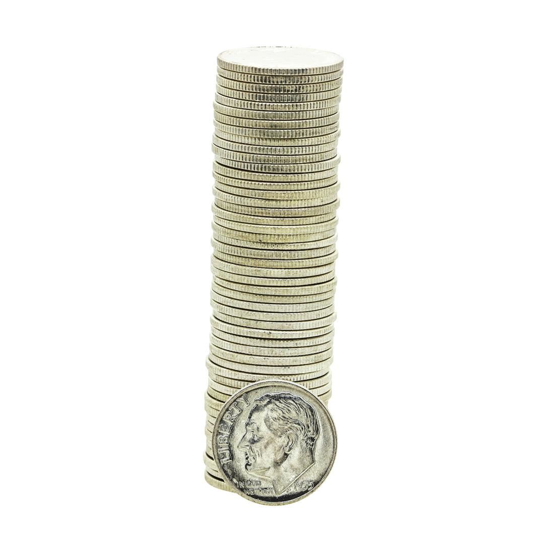 One Roll of (50) Brilliant Uncirculated 1955-D Roosevelt Dimes.