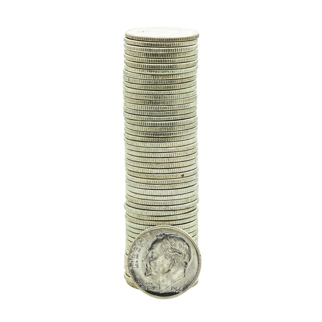 One Roll of (50) Brilliant Uncirculated 1955 Roosevelt Dimes.