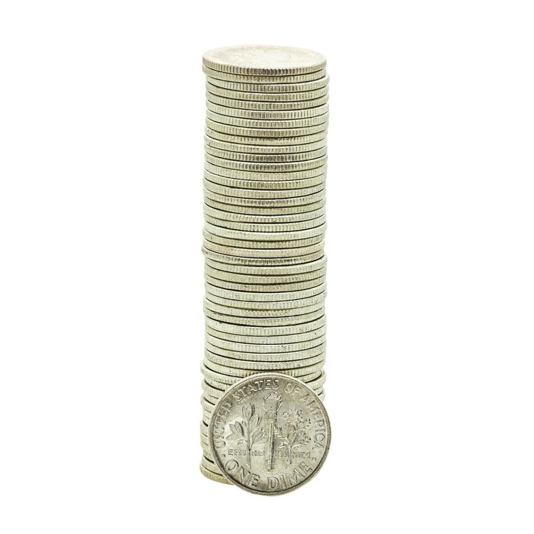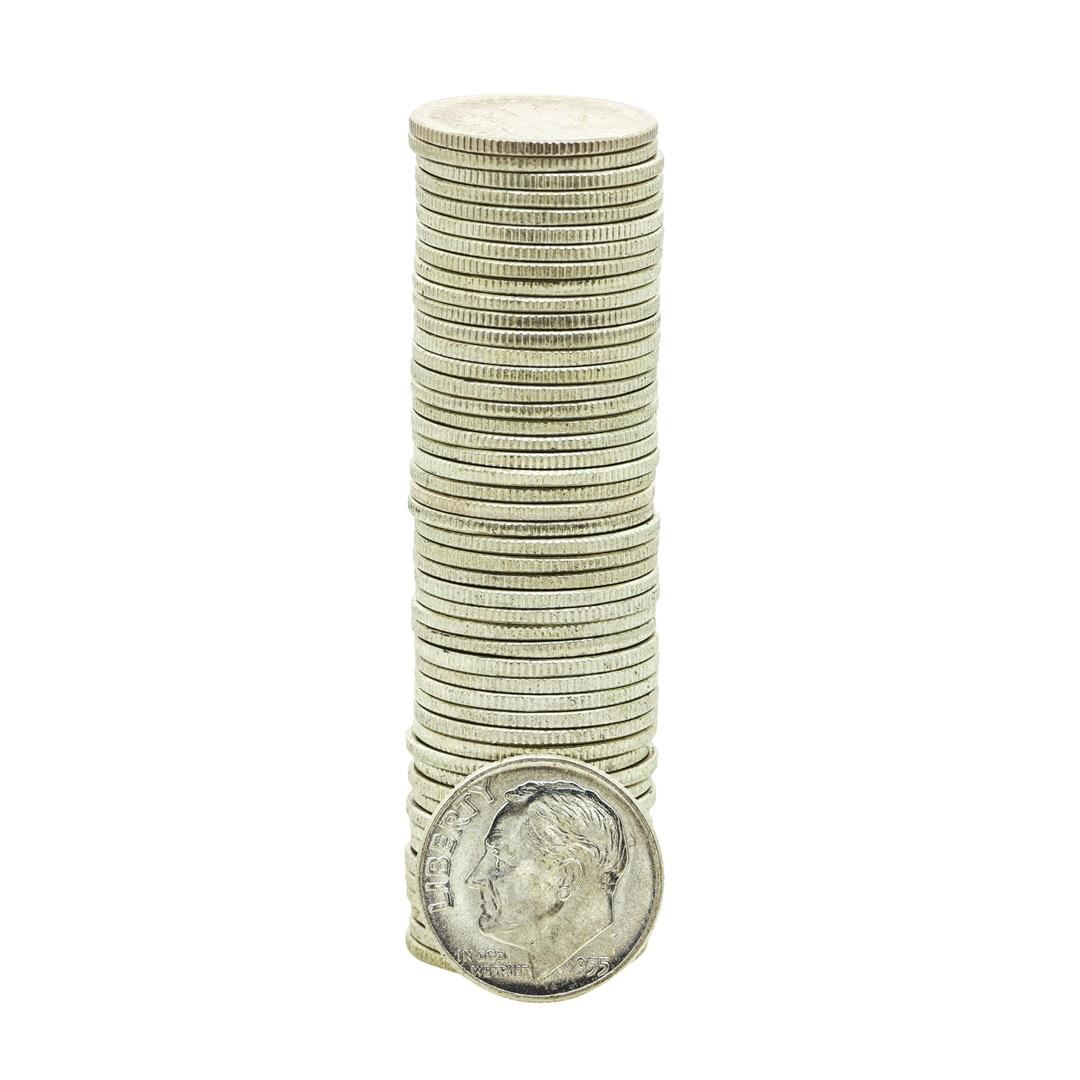 One Roll of (50) Brilliant Uncirculated 1955 Roosevelt Dimes.