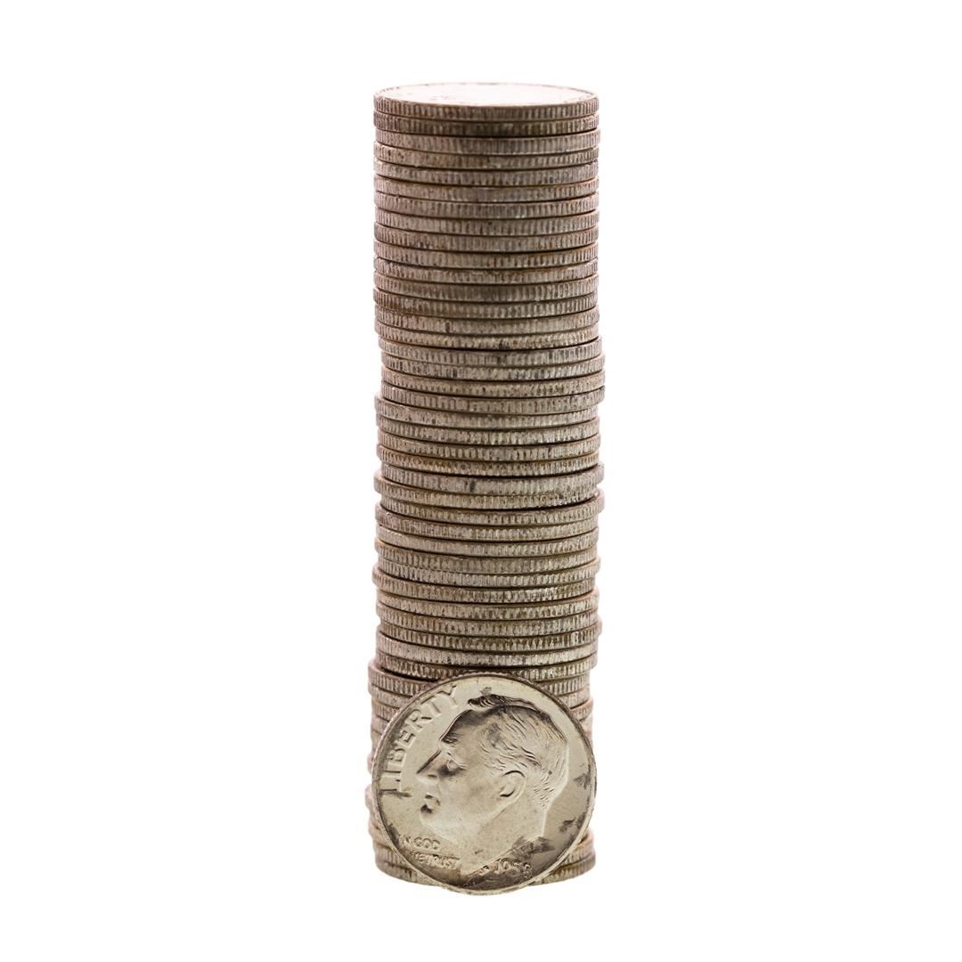 Roll of (50) Brilliant Uncirculated 1958-D Roosevelt Dime Coins