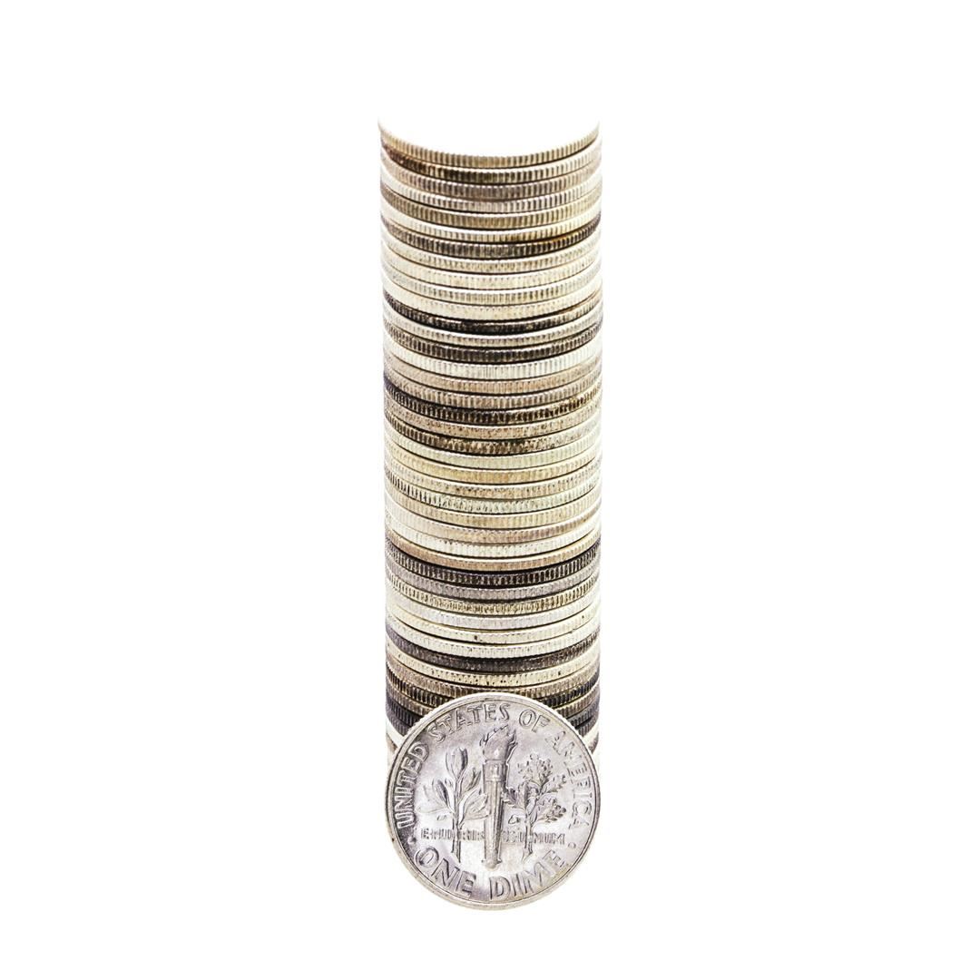 One Roll of (50) Brilliant Uncirculated 1958 Roosevelt Dimes.