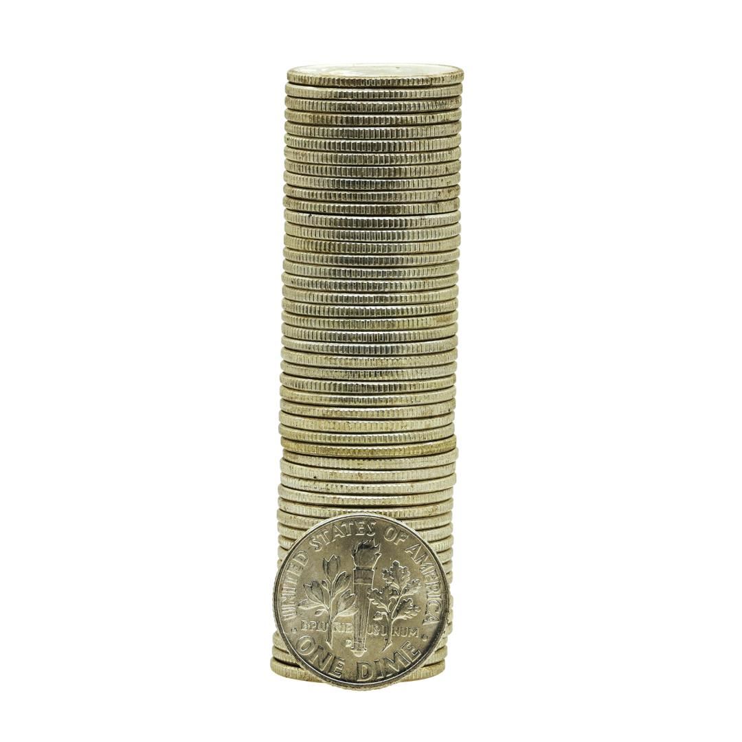 Roll of (50) Brilliant Uncirculated 1960-D Roosevelt Dime Coins