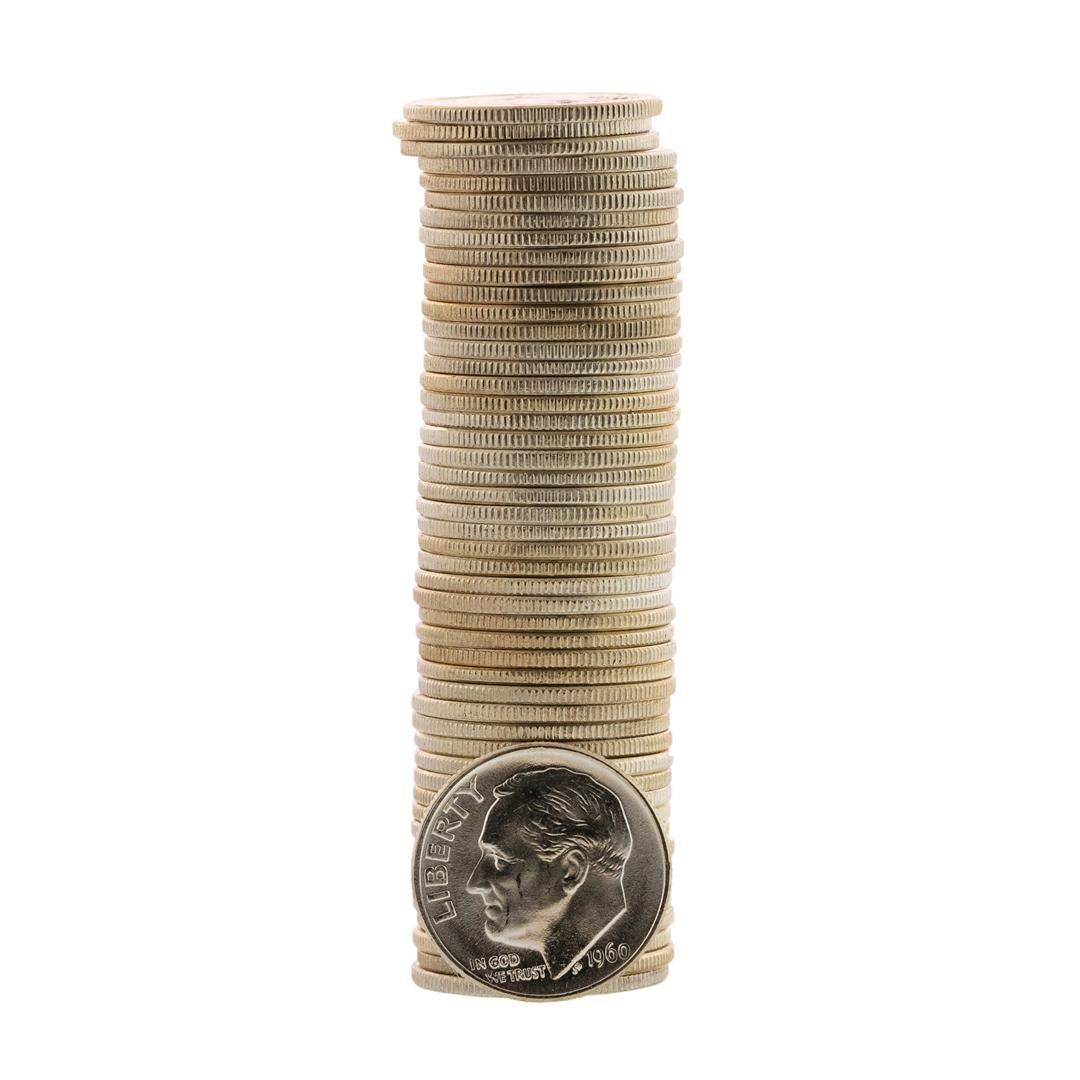 Roll of (50) Brilliant Uncirculated 1960 Roosevelt Dime Coins
