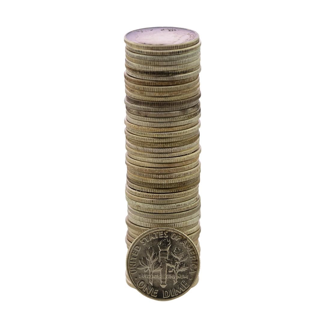 Roll of (50) Brilliant Uncirculated 1960 Roosevelt Dime Coins