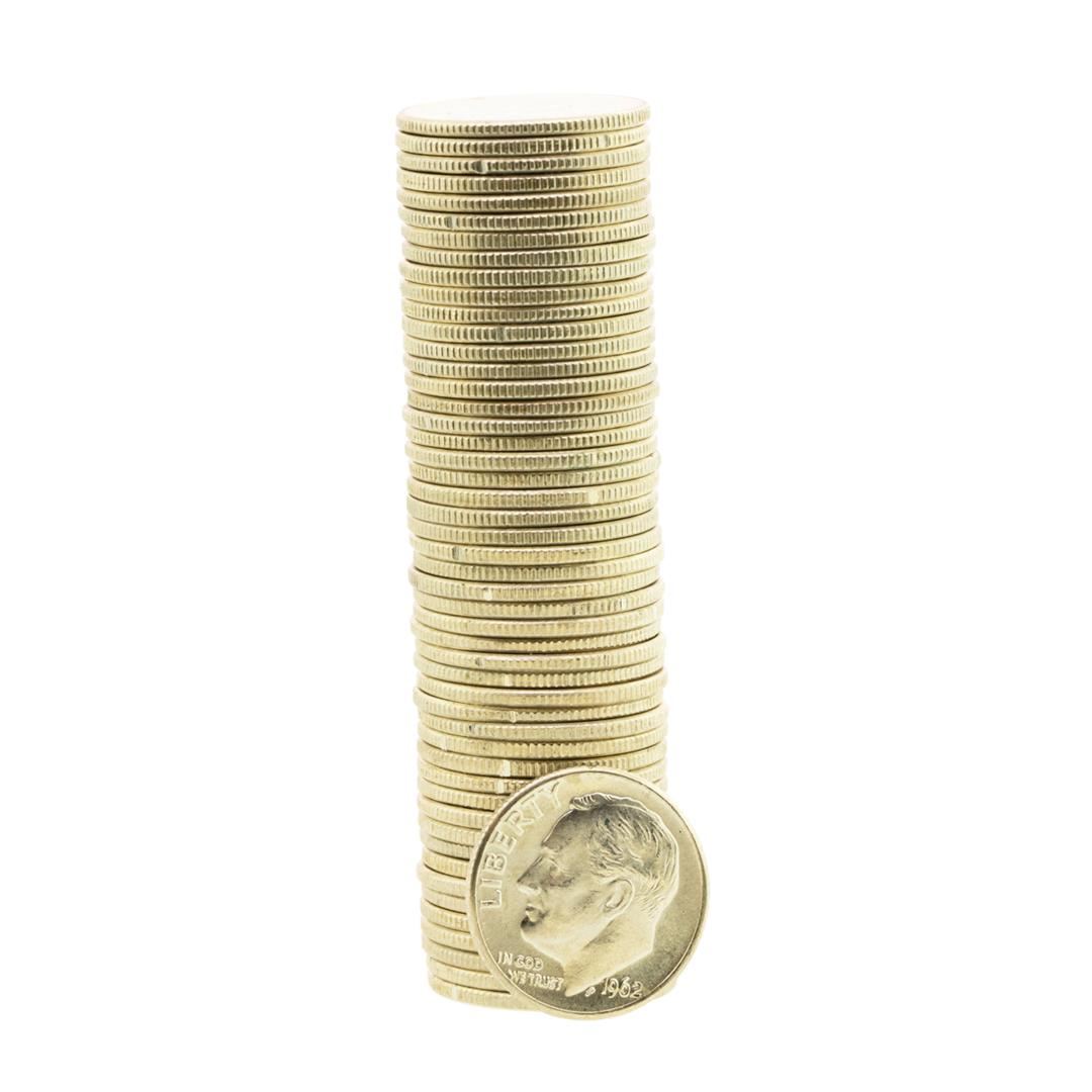 One Roll of (50) Brilliant Uncirculated 1962-D Roosevelt Dime Coins.