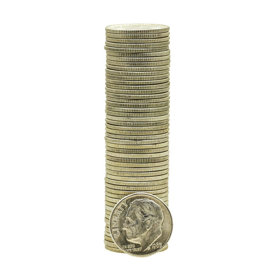Roll of (50) Brilliant Uncirculated 1963-D Roosevelt Dime Coins
