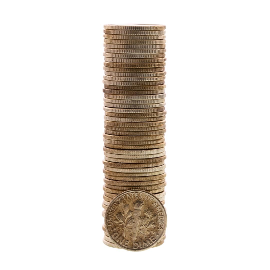 Roll of (50) Brilliant Uncirculated 1964-D Roosevelt Dime Coins