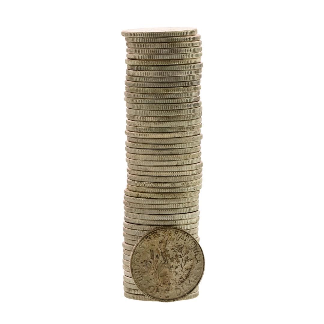 Roll of (50) Brilliant Uncirculated 1964-D Roosevelt Dime Coins