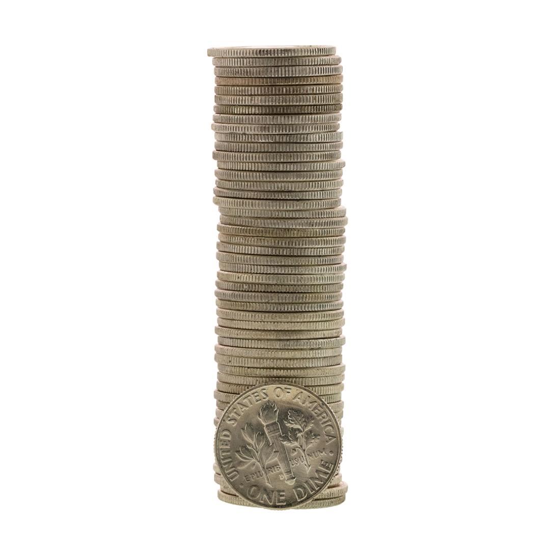 Roll of (50) Brilliant Uncirculated 1964-D Roosevelt Dime Coins