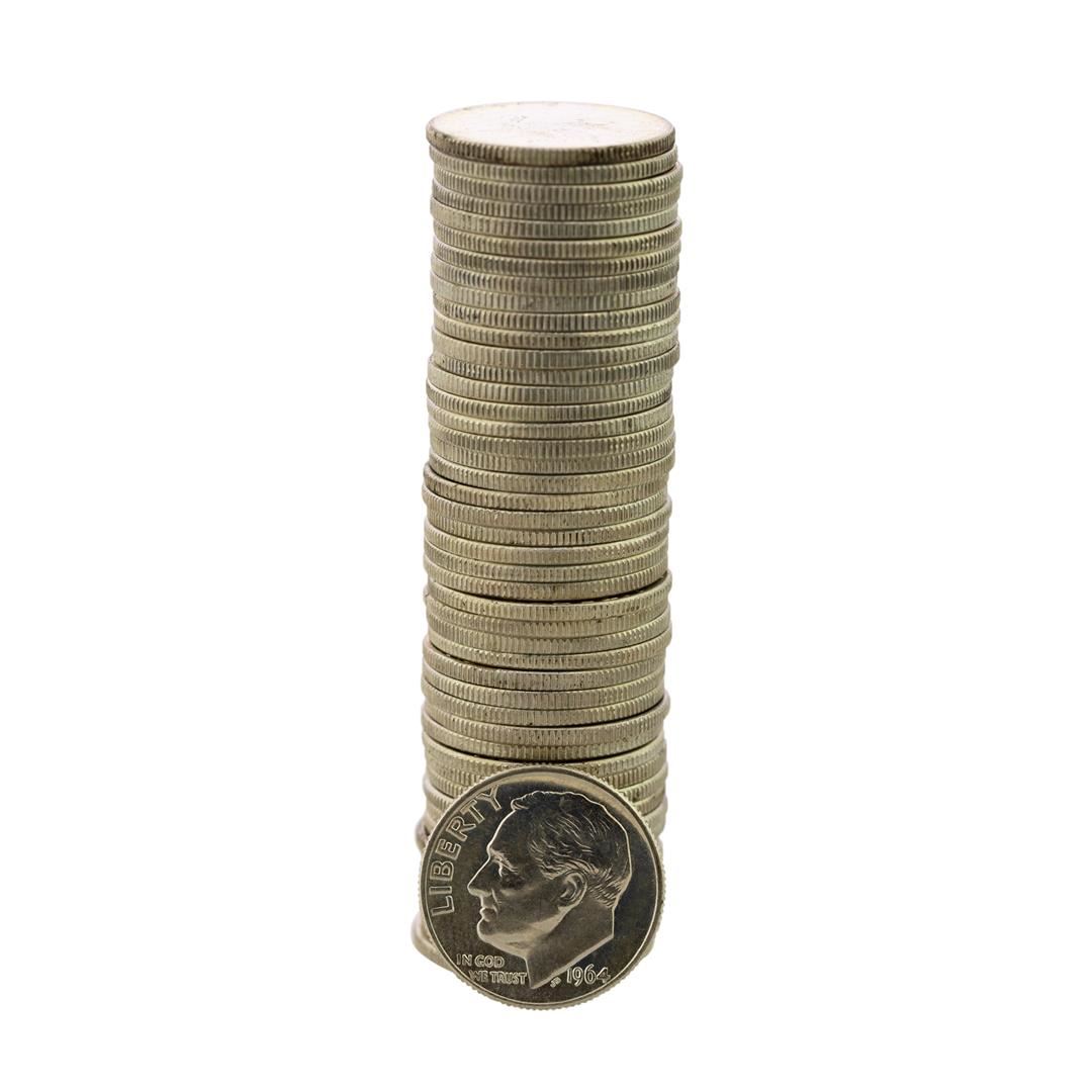 Roll of (50) Brilliant Uncirculated 1964-D Roosevelt Dime Coins