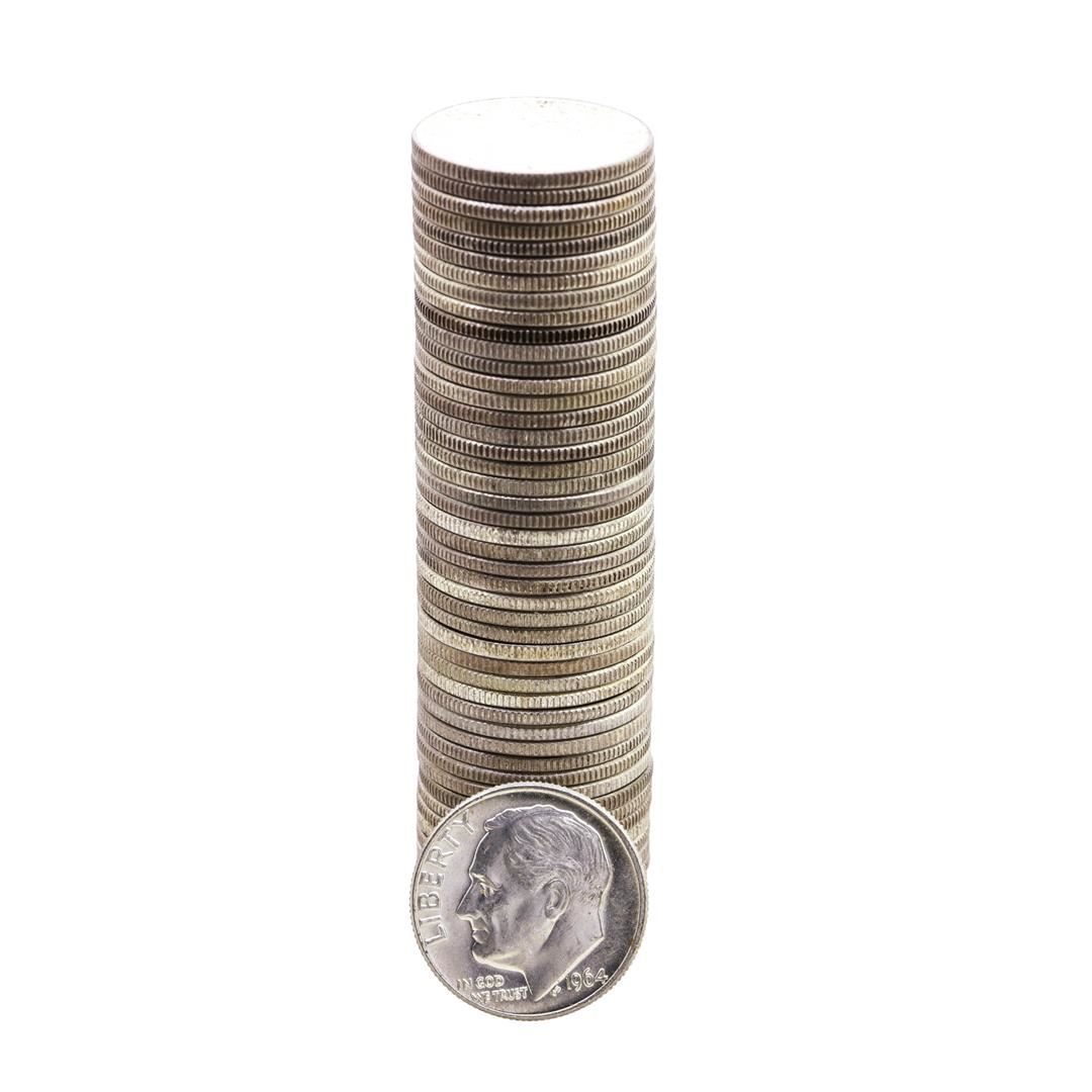 Roll of (50) Brilliant Uncirculated 1964-D Roosevelt Dime Coins