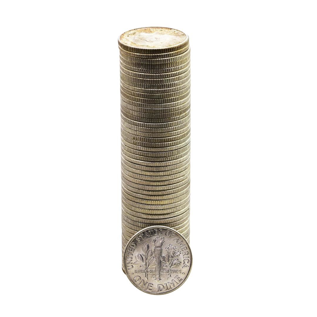 Roll of (50) Brilliant Uncirculated 1964-D Roosevelt Dime Coins
