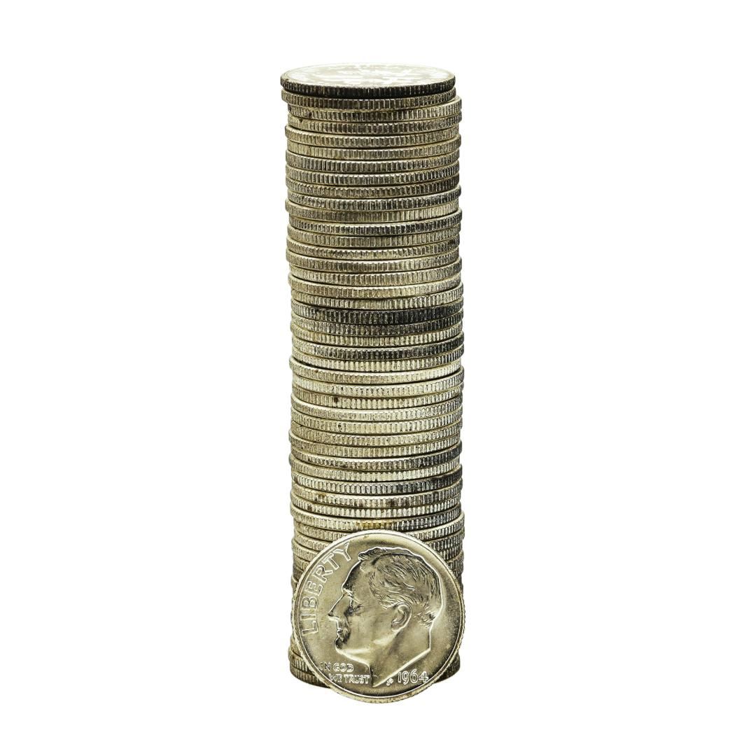 Roll of (50) Brilliant Uncirculated 1964-D Roosevelt Dime Coins