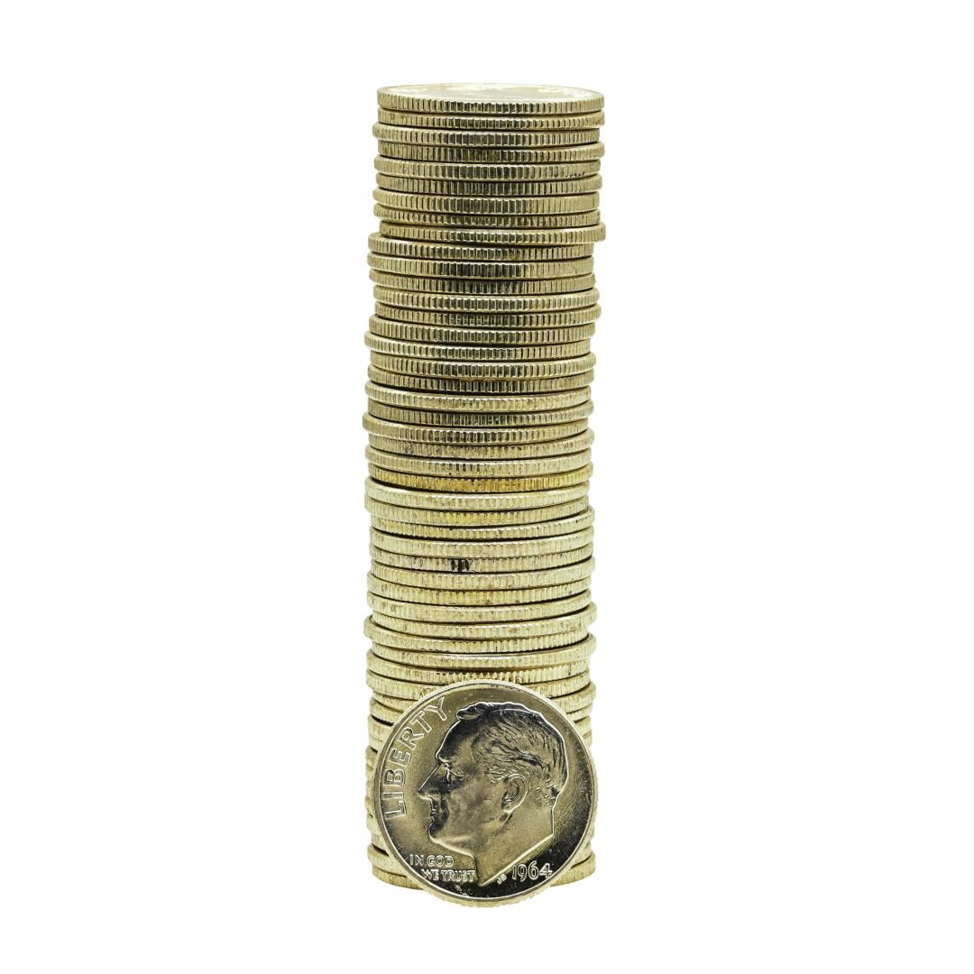 Roll of (50) Brilliant Uncirculated 1964-D Roosevelt Dime Coins