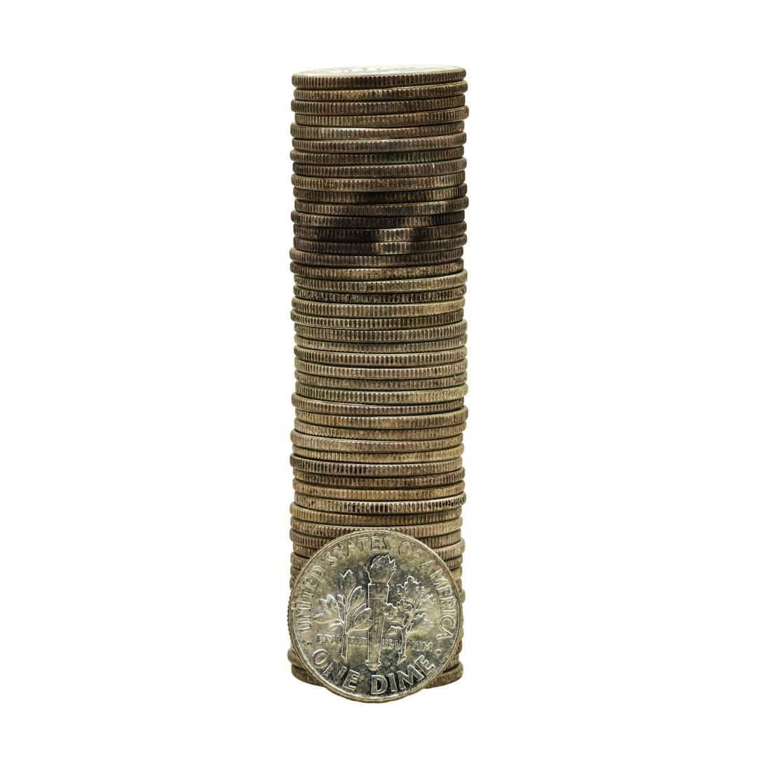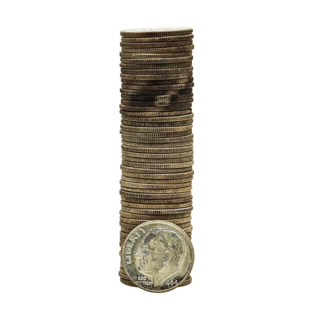 Roll of (50) Brilliant Uncirculated 1964 Roosevelt Dime Coins