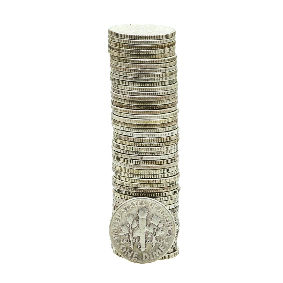 One Roll of (50) Mixed Date Roosevelt Dime Coins.
