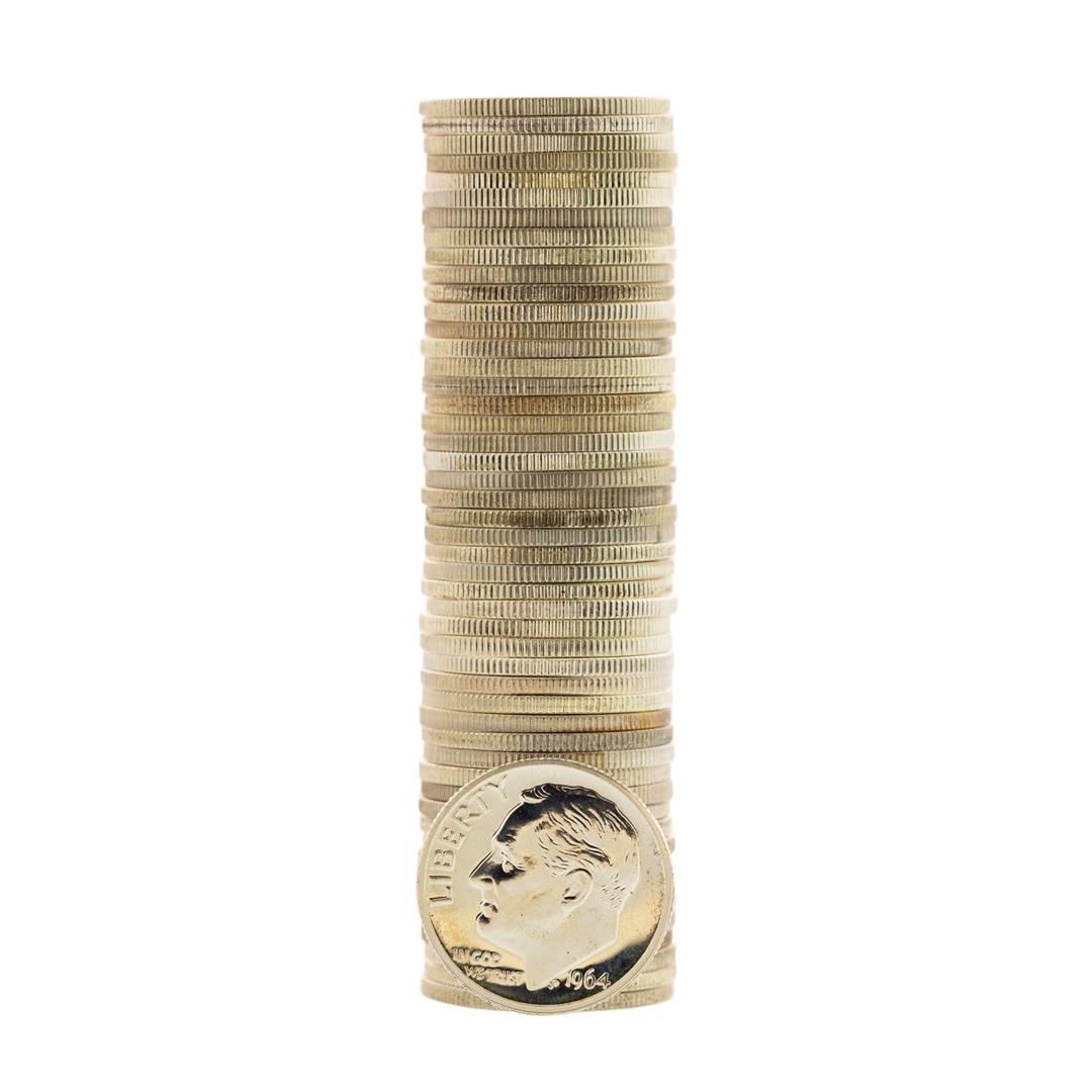 One Roll of (50) Proof 1964 Roosevelt Dime Coins.