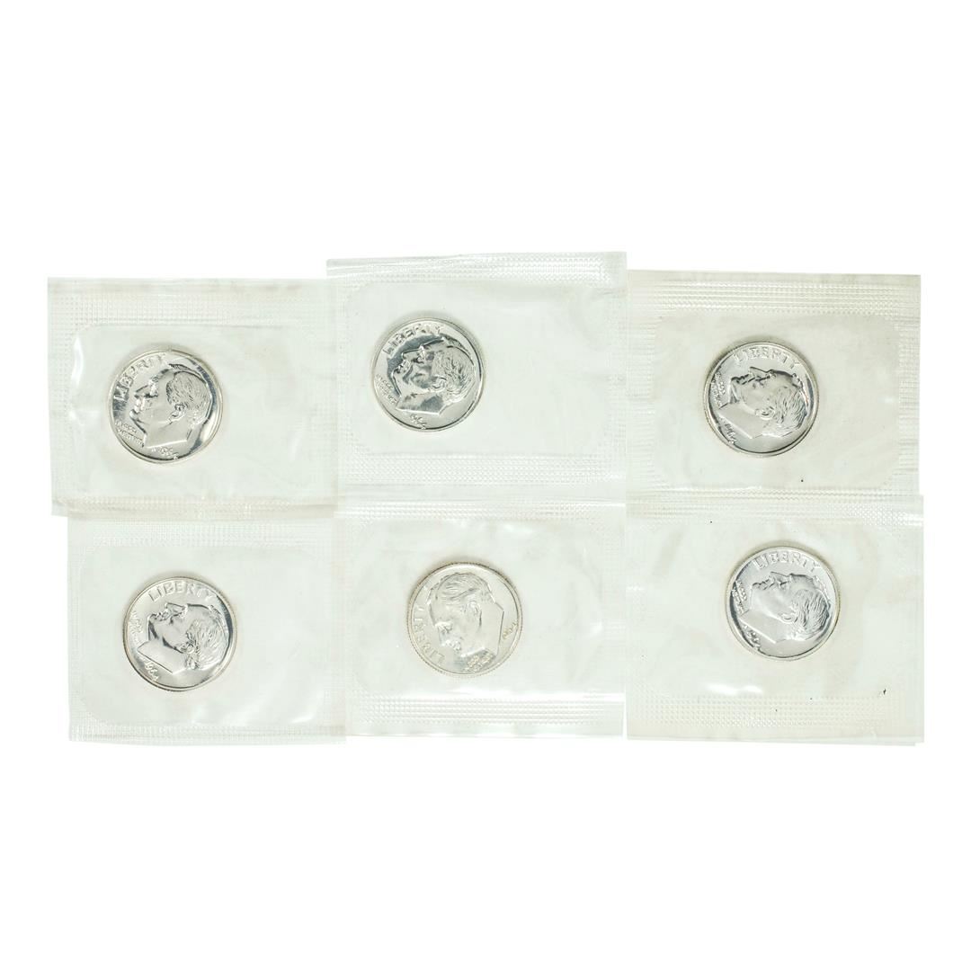 One Roll of (50) Proof 1964 Roosevelt Dime Coins.