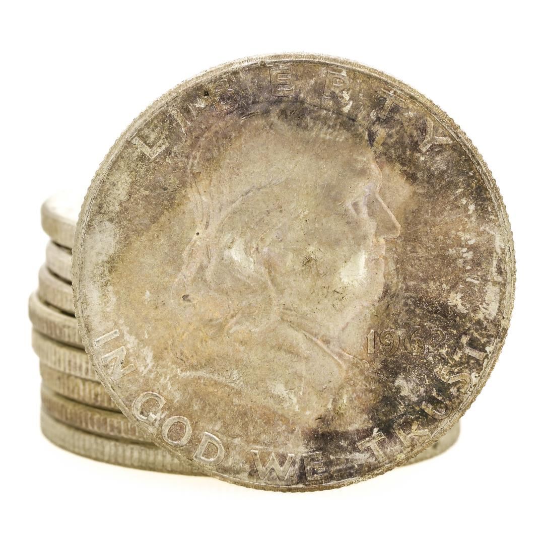 Roll of (9) Brilliant Uncirculated 1962 Franklin Half Dollar Coins